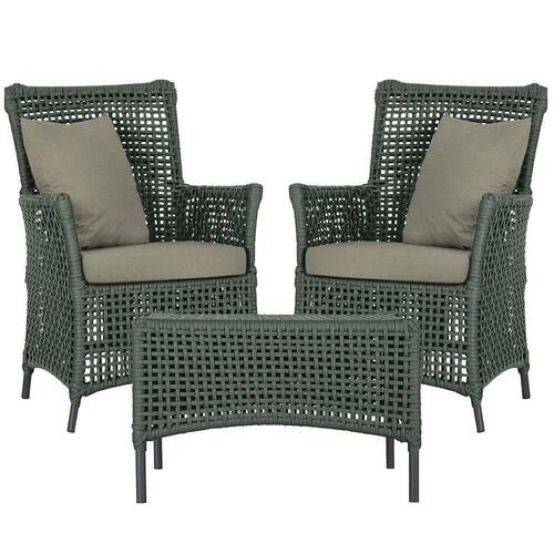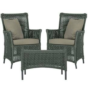 2 Poltronas E 1 Mesa Igapó Alumínio Preta Corda Náutica E8 Verde