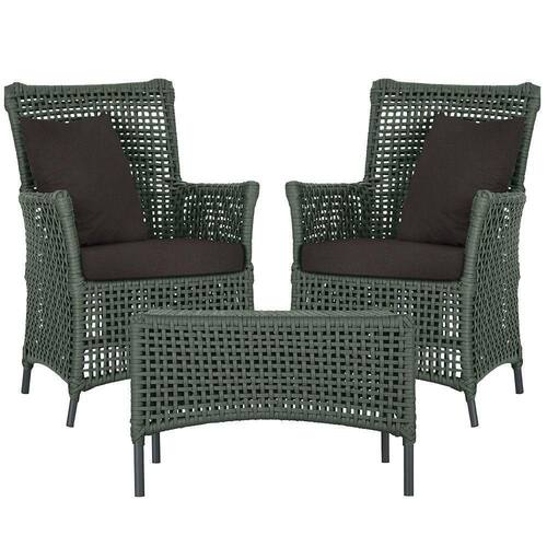 2 Poltronas E 1 Mesa Igapó Alumínio Preta Corda Náutica E9 Verde