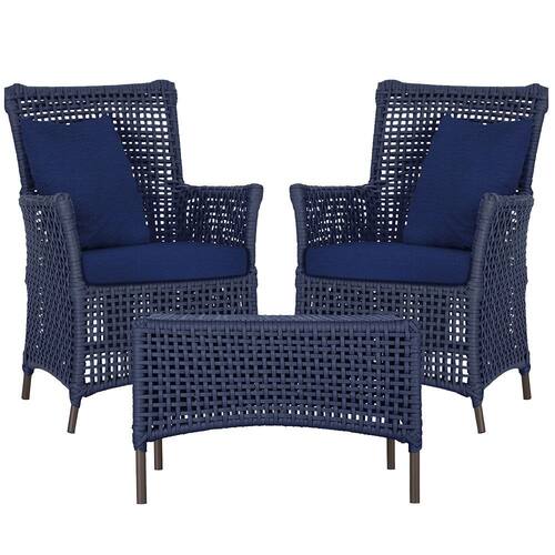 2 Poltronas e 1 Mesa Igapó em Alumínio Pintura Marrom Corda Náutica Estofado 10 - Azul