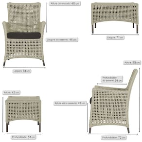 2 Poltronas e 1 Mesa Igapó em Alumínio Pintura Marrom Corda Náutica Estofado 9 - Bege