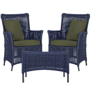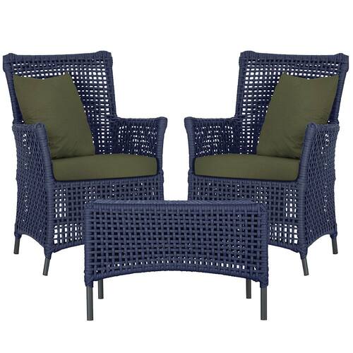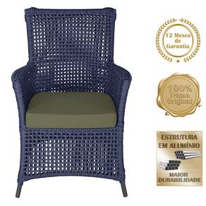 2 Poltronas e 1 Mesa Igapó em Alumínio Pintura Preta Corda Náutica Estofado 13 - Azul