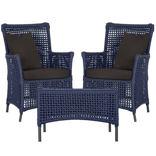 2 Poltronas e 1 Mesa Igapó em Alumínio Pintura Preta Corda Náutica Estofado 9 - Azul