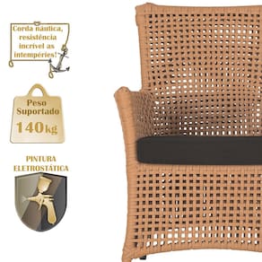 A corda náutica adiciona um toque de rusticidade moderna, enquanto o estofado impermeável garante que sua poltrona esteja sempre impecável, mesmo após uma chuva inesperada ou um acidente com líquidos.
