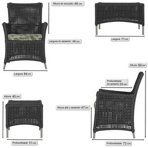 2 Poltronas e 1 Mesa Igapó em Alumínio - Preto