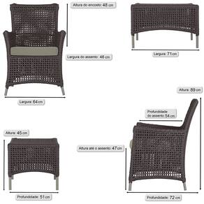 2 Poltronas e 1 Mesa Igapó em Alumínio - Marrom Cacau