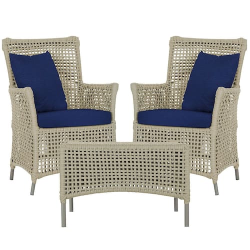 A corda náutica adiciona um toque de rusticidade moderna, enquanto o estofado impermeável garante que sua poltrona esteja sempre impecável, mesmo após uma chuva inesperada ou um acidente com líquidos.