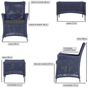 2 Poltronas e 1 Mesa Igapó em Alumínio - Azul
