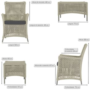 2 Poltronas e 1 Mesa Igapó em Alumínio - Bege