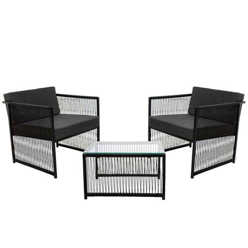 2 Poltronas com 1 Mesa de Centro Santiago em Fio de Fibra Sintética e Ferro com Pintura Eletrostática Panero Móveis.