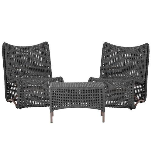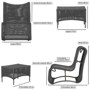 2 Poltronas E Mesa Texas Alumínio Marrom Corda Náutica Trama Preto