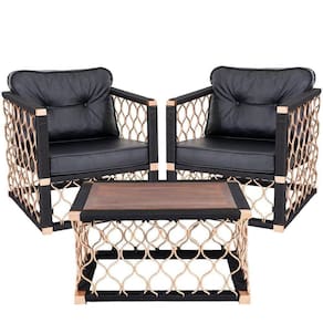 Poltronas e Mesa de centro com tampo de madeira - TRAMA