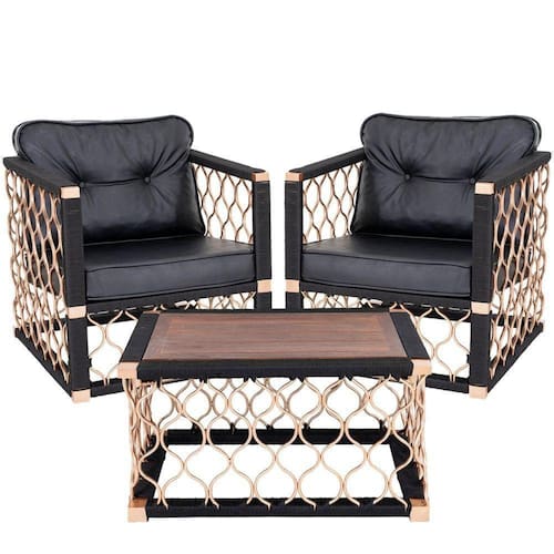 Alumínio com pintura cor Bronze, Assento Estofado, Corda Náutica