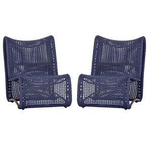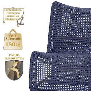 2 Poltronas Texas Em Alumínio Marrom Corda Náutica Trama Azul