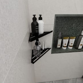 2 Porta Suporte Canto Parede Shampoo Sabonete Suporte Preto Olá Seja bem vindo a Decora Metais.