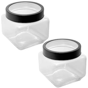 2 Potes de Vidro 800ml Tampa Metal Preta Gastro Lyor Porta Mantimentos Alimentos Quadrado.