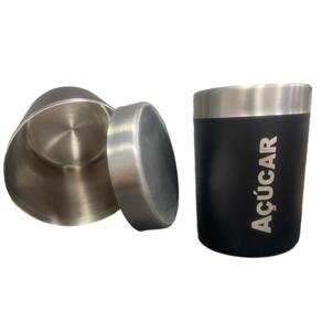 Kit de potes: acucar/cafe - 9 cm - inox/preto - ad-0302