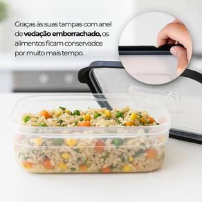 2 Pote Transparente tampa preta 1000ml Kit 2 Potes Retangulares 1000ml Preto com Tampa Vedada O kit com 2 potes retangulares de 1000ml na cor preta oferece praticidade, resistência e ótimo aproveitamento de espaço. Ideal para armazenar marmitas, alimentos em porções maiores ou organizar a geladeira e o freezer. Cada pote possui tampa com vedação firme, que ajuda a conservar os alimentos por mais tempo e evita vazamentos. O material é plástico atóxico, resistente a impactos e próprio para uso no dia a dia. Os potes podem ser utilizados com segurança no micro-ondas, freezer e lava-louças. Características: Capacidade de 1000ml por pote Tampa com vedação emborrachada Indicado para armazenar alimentos e marmitas Pode ser no micro-ondas, freezer e lava-louças Cor preta com acabamento moderno Material resistente e durável Dimensões de cada pote: Altura: 73 mm Largura: 189 mm Comprimento: 142 mm Conteúdo da embalagem: 2 potes plásticos retangulares de 1000ml com tampa Deseja isso também Marca: Não Informado