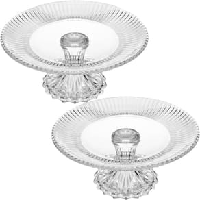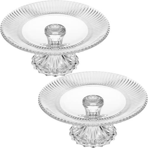 2 Pratos Porta Bolo Renaissance Cristal com Pé 25cm Boleira Incolor Torta Docinhos Lyor.