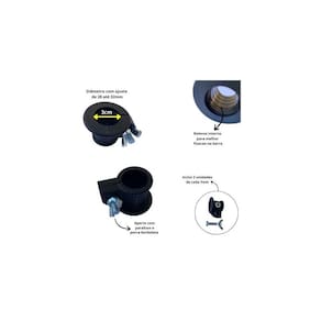 CARACTERISTICAS: COR: PRETO - TAMANHO: 30mm - DIAMETRO: 3cm (RETA DE UMA PONTA A OUTRA DO FURO) - CONTEM: 2 PRESILHAS BLOQUEADORAS PUMP + 2 PORCAS BORBOLETA + 2 PARAFUSOS - BENEFICIOS: MAIOR APERTO EVITANDO QUE AS ANILHAS DESLIZEM DA BARRA - GARANTIA: 3 MESES CONTRA DEFEITO DE FABRICAÇÃO