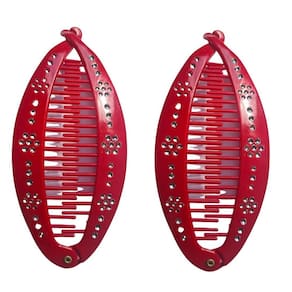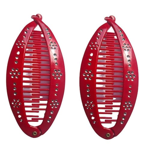 2 Presilhas De Cabelo Vermelho Estilo Banana Pente Strass