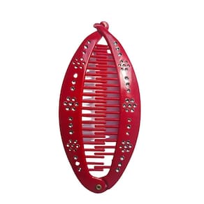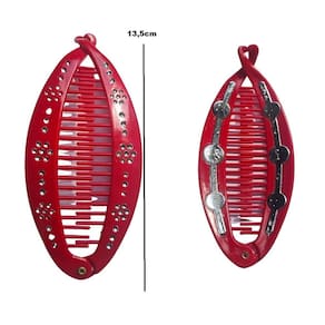Contém: 2 unidades presilha de cabelo Vermelho estilo banana pente com strass