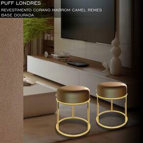 2 Puff Londres Luxo 50cm Marrom Camel Remes