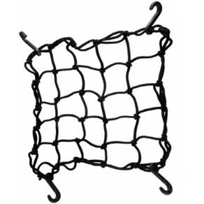 Rede elástica para bagageiro de motos medindo 45 cm x 45 cm com 6 ganchos. Disponível nas cores azul, laranja, preto, verde e vermelho. Escolha a cor desejada antes da finalização do seu pedido.