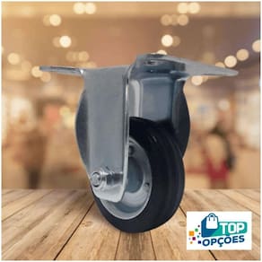 2 Rodizio Borracha 3 Pol. Placa Fixa Rolamento Rolete