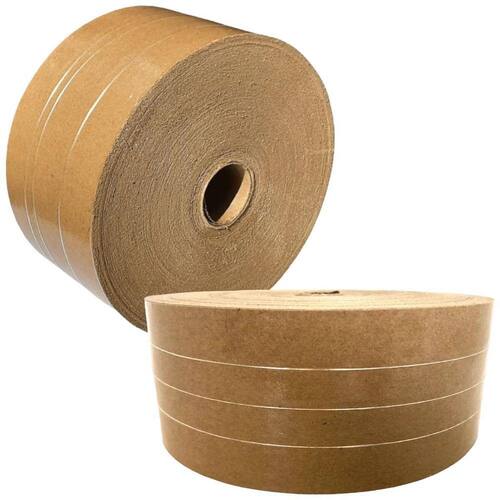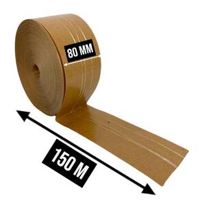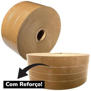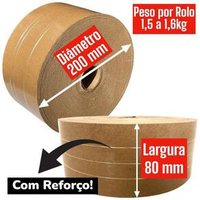 Características -material: produzida com papel kraft virgem; -cola: vegetal; -medidas: 80mm de largura; -metragem: aproximadamente 150 metros de comprimento; - gramatura: 80g/m -cor: marrom/parda; -peso aproximado do rolo: 1,4 a 1,6kg; -aplicações: artesanato, fechamento de caixa de papelão, quadros, etc.; -reforço: 3 fios de poliéster fios de alta resistência ;