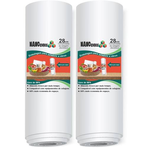 2 Rolos Nanocubos 28x500cm Sacos Ranhura para Seladora A Vácuo Embalagens 2 rolos Nanocubos 28 cm X 500 cm para seladoras a vácuo. Embalar produtos a vácuo é a melhor forma de mantê-los sempre protegidos por muito mais tempo. Ao embalar alimentos, a validade deles é completamente estendida, pois eles não terão nenhum contato com o ar e serão pouco afetados pela ação do tempo. Você pode embalar tanto alimentos crus como alimentos já preparados para serem consumidos em outro momento. Você economiza muito dinheiro e evita o desperdício Os sacos para vácuo Nanocubos são produzidos com alta tecnologia em Nylon Poli seguindo padrões de qualidade internacional. Possuem 12 micras, 3 barreiras de proteção, sem presença de BPA Não tóxicos e funcionam com equipamentos de embalagens a vácuo. Além de alimentos, é possível utilizá-lo com objetos pessoais, documentos ou utensílios, conservando-os como novos por muito tempo e aumentando sua vida útil. Características do produto: - Aparência: Transparente com ranhuras; - Forma disponível: Rolos, é possível montar sacos do tamanho que quiser; - Quanto ao uso: Reciclável pode utilizar várias vezes seguidas; - Iniciação ao rasgo: Difícil; - Propagação ao rasgo: Difícil; - Temperatura máxima de uso: 120 C; - Resistência a ácidos: Excelente mantendo o cheiro do alimento; - Resistência a óleos e gorduras: Excelente; - Segurança alimentar: Conserva o alimento. Conteúdo da Caixa 2- Rolos 28 cm X 500 cm. Políticas da loja: - : contra defeitos de fabricação, 90 dias; - Prazo de envio: imediato após a confirmação do pagamento; - Cancelamento: Realizamos a devolução total do dinheiro; Qualquer dúvida estamos à disposição Ean: 7896296916278