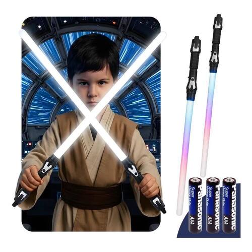 Duelo de Dois: Vem com 2 sabres, perfeito para batalhas entre amigos ou para recriar cenas icônicas do universo Star Wars.