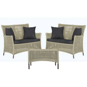 2 Sofá Área e Mesa Igapó Alumínio Pintura Marrom Corda Náutica Estofado Impermeável Almofada 11 Trama - Bege Médio