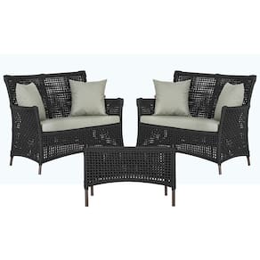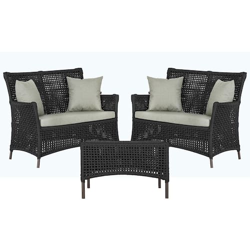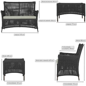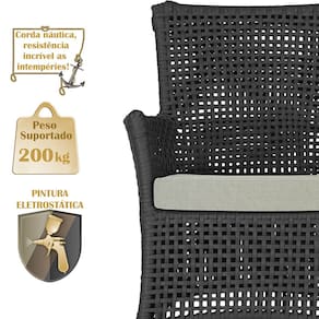 2 Sofá Área e Mesa Igapó Alumínio Pintura Marrom Corda Náutica Estofado Impermeável Almofada 3 Trama - Preto