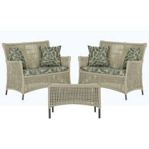 2 Sofá Área e Mesa Igapó Alumínio Pintura Marrom Corda Náutica Estofado Impermeável Almofada 5 Trama - Bege Claro