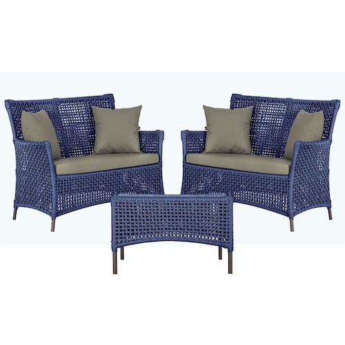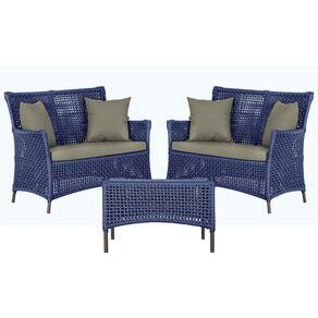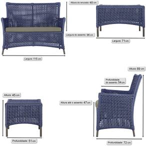 2 Sofá Área e Mesa Igapó Alumínio Pintura Marrom Corda Náutica Estofado Impermeável Almofada 8 Trama - Azul