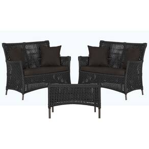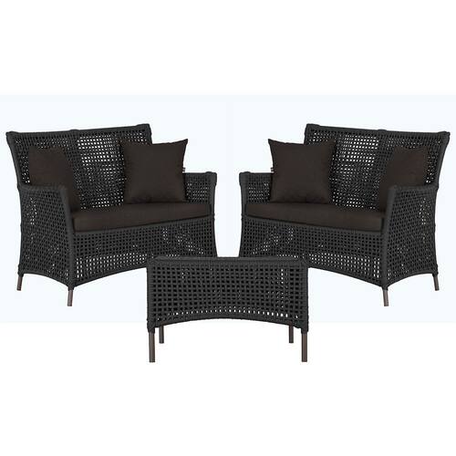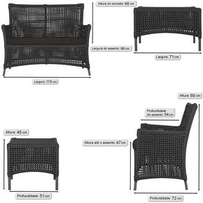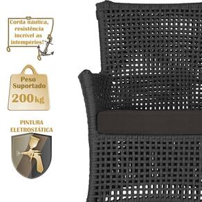 2 Sofá Área e Mesa Igapó Alumínio Pintura Marrom Corda Náutica Estofado Impermeável Almofada 9 Trama - Preto
