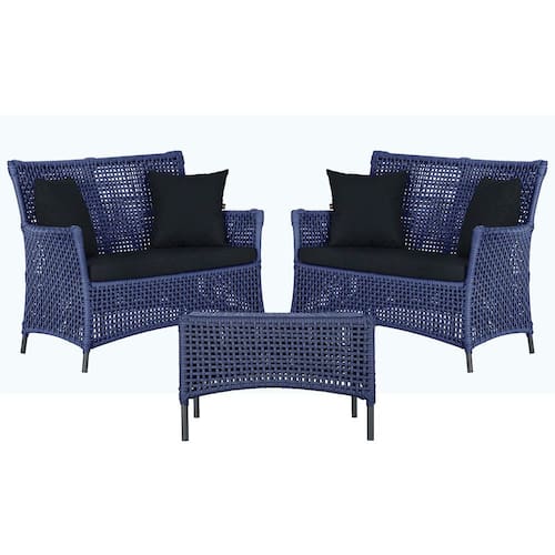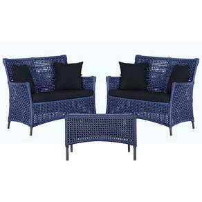 2 Sofá Área e Mesa Igapó Alumínio Pintura Preta Corda Náutica Estofado Impermeável Almofada 12 Trama - Azul