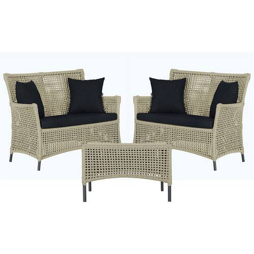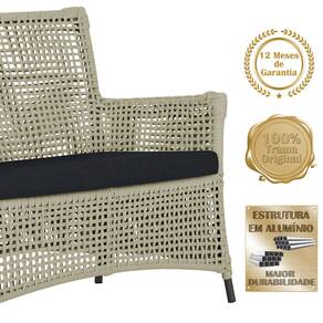 2 Sofá Área e Mesa Igapó Alumínio Pintura Preta Corda Náutica Estofado Impermeável Almofada 12 Trama - Bege