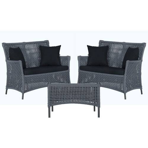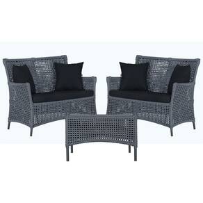 2 Sofá Área e Mesa Igapó Alumínio Pintura Preta Corda Náutica Estofado Impermeável Almofada 12 Trama - Preto