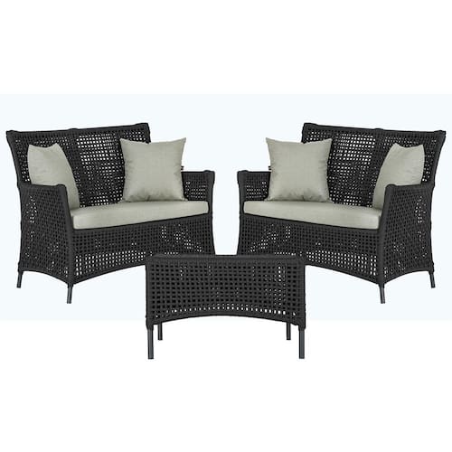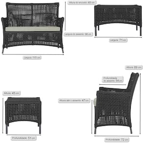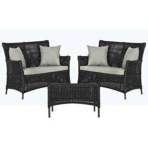 2 Sofá Área e Mesa Igapó Alumínio Pintura Preta Corda Náutica Estofado Impermeável Almofada 3 Trama - Preto