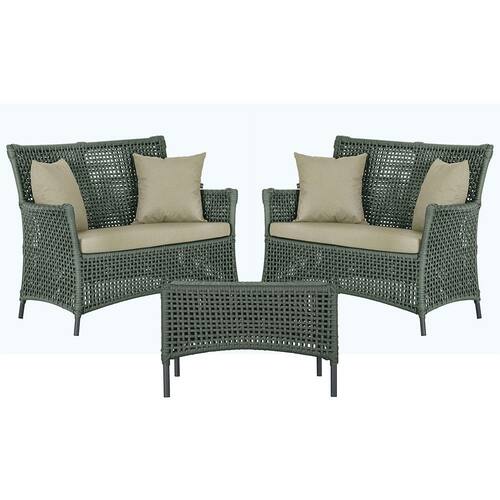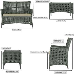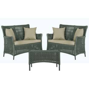 2 Sofá Área e Mesa Igapó Alumínio Pintura Preta Corda Náutica Estofado Impermeável Almofada 7 Trama - Verde Musgo