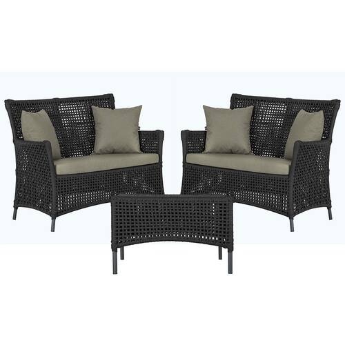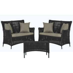 2 Sofá Área e Mesa Igapó Alumínio Pintura Preta Corda Náutica Estofado Impermeável Almofada 8 Trama - Preto