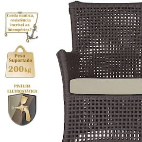 A corda nautica adiciona um toque de rusticidade moderna, enquanto o estofado impermeavel garante que sua Sofa esteja sempre impecavel, mesmo apos uma chuva inesperada ou um acidente com liquidos.