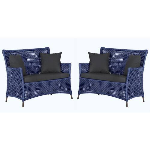 2 Sofás Área Externa Igapó Alumínio Pintura Marrom Corda Náutica Estofado Impermeável 11 - Azul