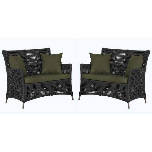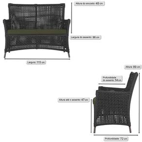 2 Sofás Área Externa Igapó Alumínio Pintura Marrom Corda Náutica Estofado Impermeável 13 - Preto