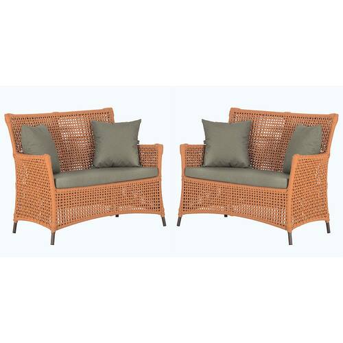 2 Sofás Área Externa Igapó Alumínio Pintura Marrom Corda Náutica Estofado Impermeável 8 - Laranja