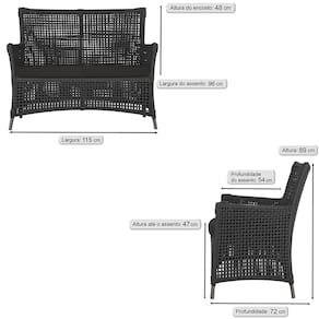 2 Sofás Área Externa Igapó Alumínio Pintura Marrom Corda Náutica Estofado Impermeável 9 - Preto