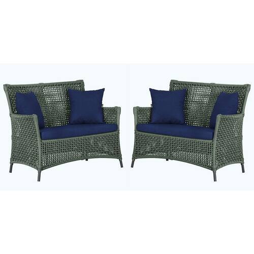 2 Sofás Área Externa Igapó Alumínio Pintura Preta Corda Náutica Estofado Impermeável 10 - Verde