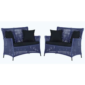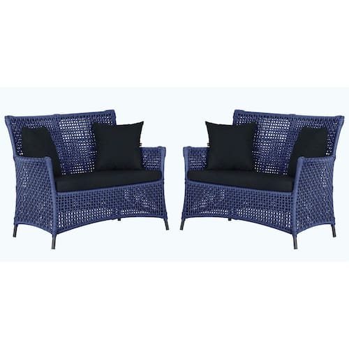 2 Sofás Área Externa Igapó Alumínio Pintura Preta Corda Náutica Estofado Impermeável 12 - Azul