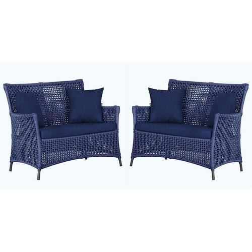 2 Sofás área Externa Igapó Alumínio Preta Corda Náutica E10 Azul